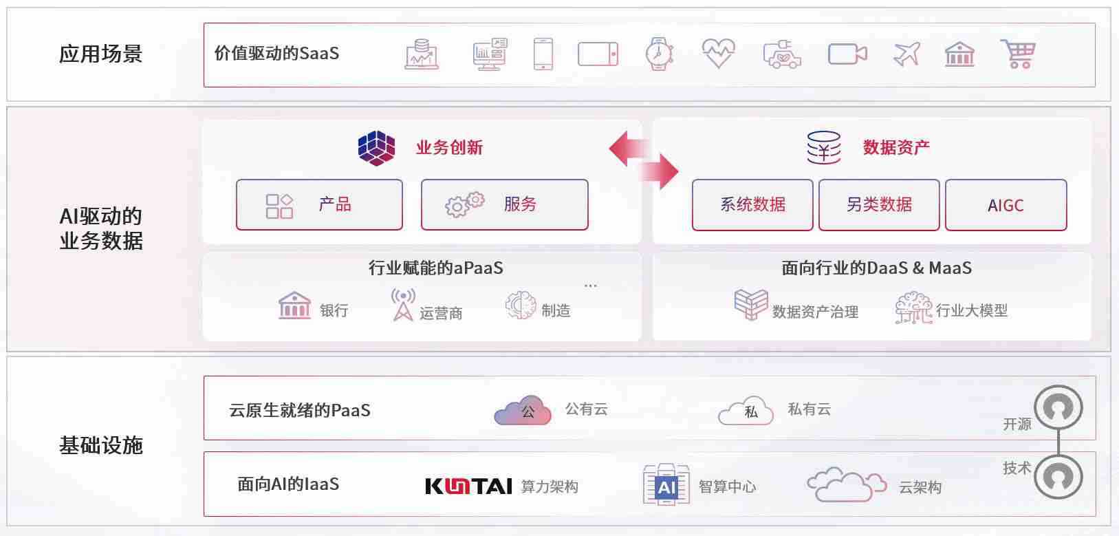 数字时代,,,围绕企业数字化转型的关键要素,,,,z6尊龙数码开创性的提出数云融合战略和技术体系框架,,,,着力在云原生、、、、数字原生、、、AI原生和信创产业上架构产品和服务能力,,,,为处在不同数字化转型阶段的快消零售、、、、汽车、、金融、、、、医疗、、政企、、、、教育、、、运营商等行业客户提供泛在的敏捷IT能力和融合的数据驱动能力,,,,构建跨界融合创新的数字业务场景和新业务模式,,助力企业级客户建立面向未来的核心能力和竞争优势,,,全面推动社会的数字化、、智能化转型升级。。。